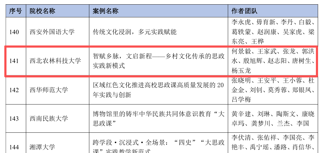该案例聚焦“文化传承·守正创新”主题,围绕乡村文化传承与思想政治教育深度融合,构建了“理论扎根—模式构建—教学应用—评估优化”四阶闭环模式。案例创新性地采用“人工+AI协作”模式,搭建起“课堂—社会—网络”三维联动的立体化育人场景,有效解决了思政育人中理论与实践脱节、内容方法滞后、教学效果评估难等突出问题。此项成果是我校深入贯彻习近平总书记关于思政课建设和“大思政课”重要指示精神、扎实推进思政课教学改革的重要体现。学校将以此次入选为契机,继续秉承“经国本、解民生、尚科学”的办学理念,为推动新时代高校思想政治工作高质量发展贡献西农力量。