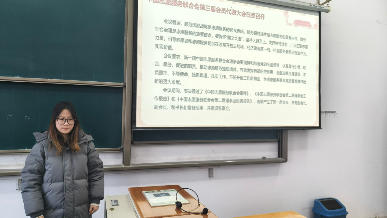 为深入贯彻落实习近平总书记关于志愿服务讲话精神,引导广大青年学子在服务奉献中成长成才,12月17日上午,我院团总支、研究生会在三号教学楼S3403开展“弘扬志愿精神 助力民族复兴”政治理论学习活动。本次学习由研究生会成员高林轩主持。