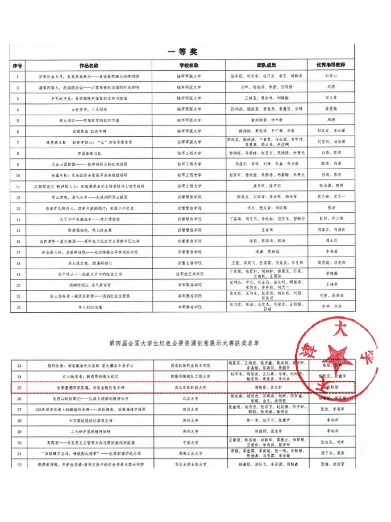 第四届全国大学生红色全景资源创意展示大赛获奖名单