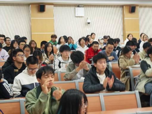 在之后的学生提问环节,现场气氛活跃。同学们围绕“现代诗的写作”、“不同的人对文学观点的认同与差异”等困惑踊跃提问。侯雅丽老师一一予以恳切回应,并针对相关问题与同学们进行进一步的交流与探讨。她精辟的见解与温和的引导,引发了同学们的深刻思考,不时收获全场的阵阵掌声。