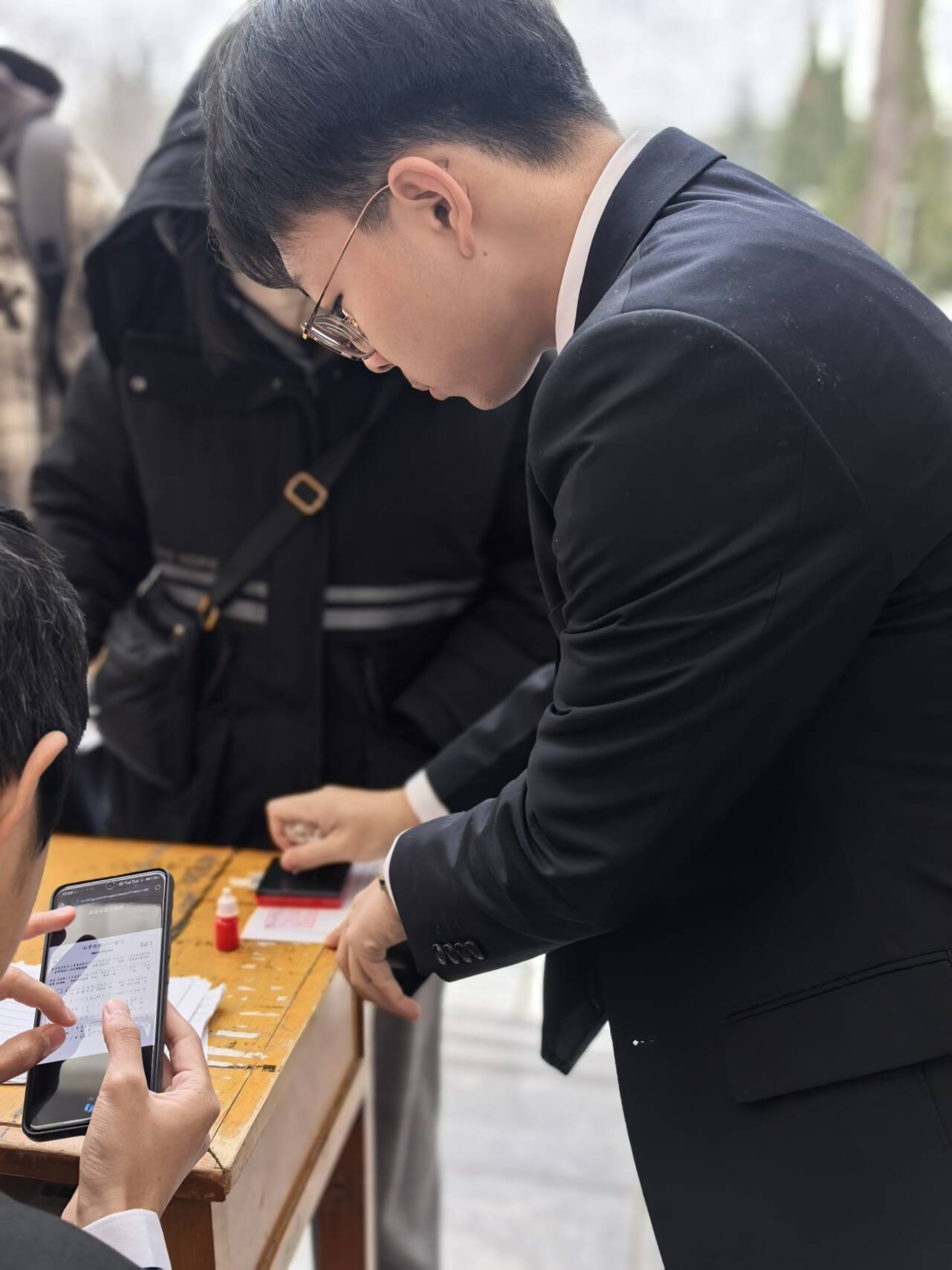 (工作人员正在为参加活动的同学盖章)