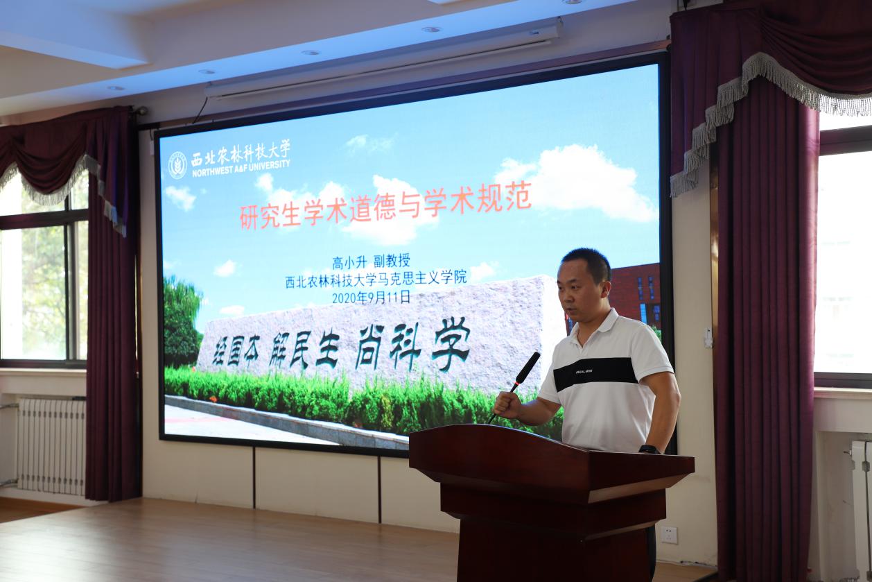 高小升副教授为新生做学术道德与学术规范教育,他详细介绍了什么是学术道德与规范,为什么要建立和遵守学术道德和规范,例举了七种学术不端行为,希望同学们信守论文写作规范、尊重知识产权。并给同学们说明了今后的阅读和写作中需要注意的事项,提出了中肯的建议。
