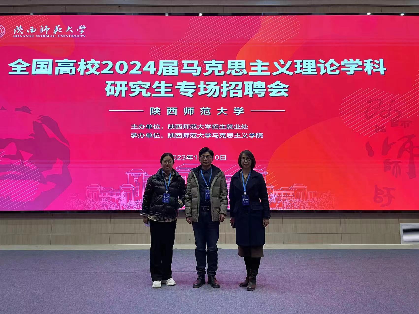 为落实学校《关于加强新时代马克思主义学院建设的实施意见》,进一步建强学院教师队伍,同时拓宽学院毕业生就业渠道,12月10日,院党委副书记王家武、道德法治系主任康燕等参加了“全国高校2024届马克思主义理论学科研究生专场招聘会”。招聘会由陕西师范大学学生就业指导服务中心主办和马克思主义学院承办,共有来自全国20个省的62家招聘单位参加了招聘会。
