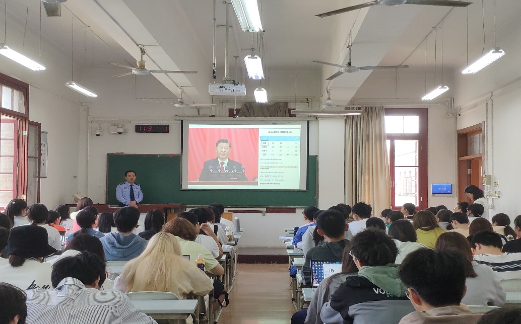 张警官从国家安全的概念、大学生违反国家安全常见行为以及大学生如何维护国家安全三方面对国家安全进行了系统的介绍,具有很强的针对性,使同学们对于总体国家安全观有了更深入的了解,引导学生担当时代新人,共筑国家安全防线。